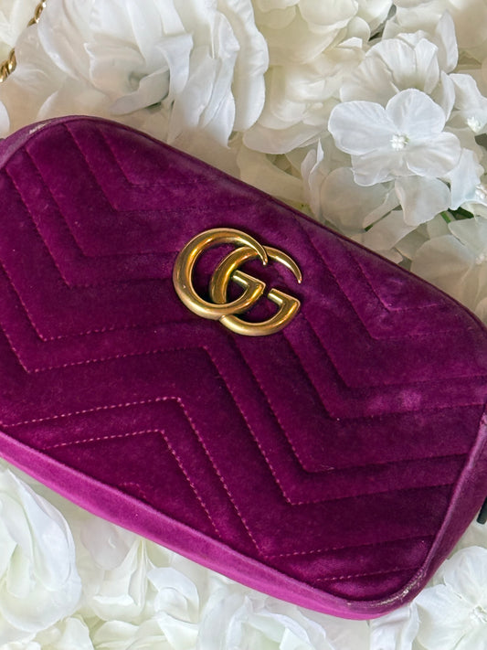 Gucci GG Matelasse Velvet Marmont Purple Crossbody Bag