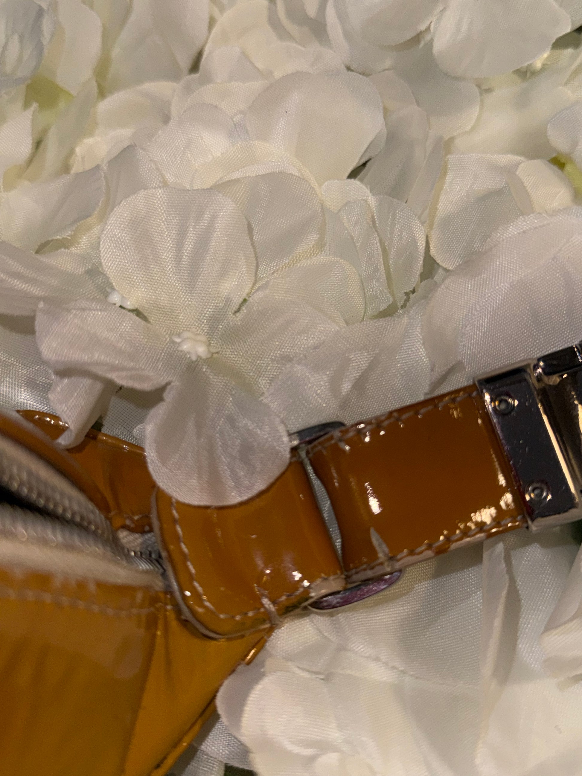 Condition: Fair. Some scratches throughout. Patent leather has some color transfer, may be repaired. Scratches throughout handle. Hardware works great. Zipper functions properly. No smells or odors. Interior is clean with Chanel Original hologram in tact and visible.