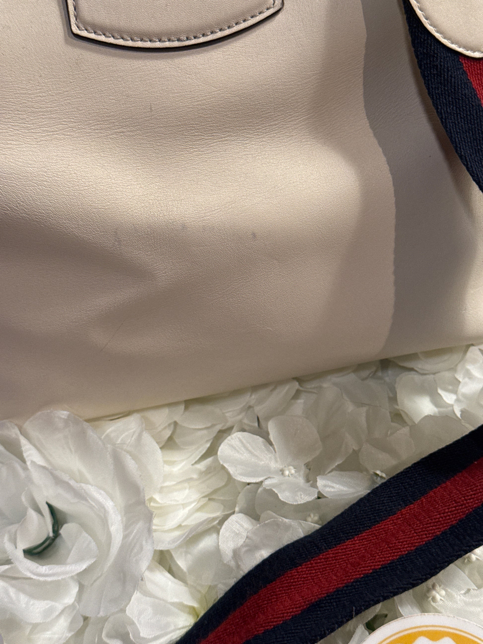 Condition: Very Good. Minimal signs of wear. Clean interior. No smells or odors. Small misshapen on front of bag, behind strap, and on the bottom of the bag (please see all photos for reference). Date code is visible. Original Gucci Strap is included.