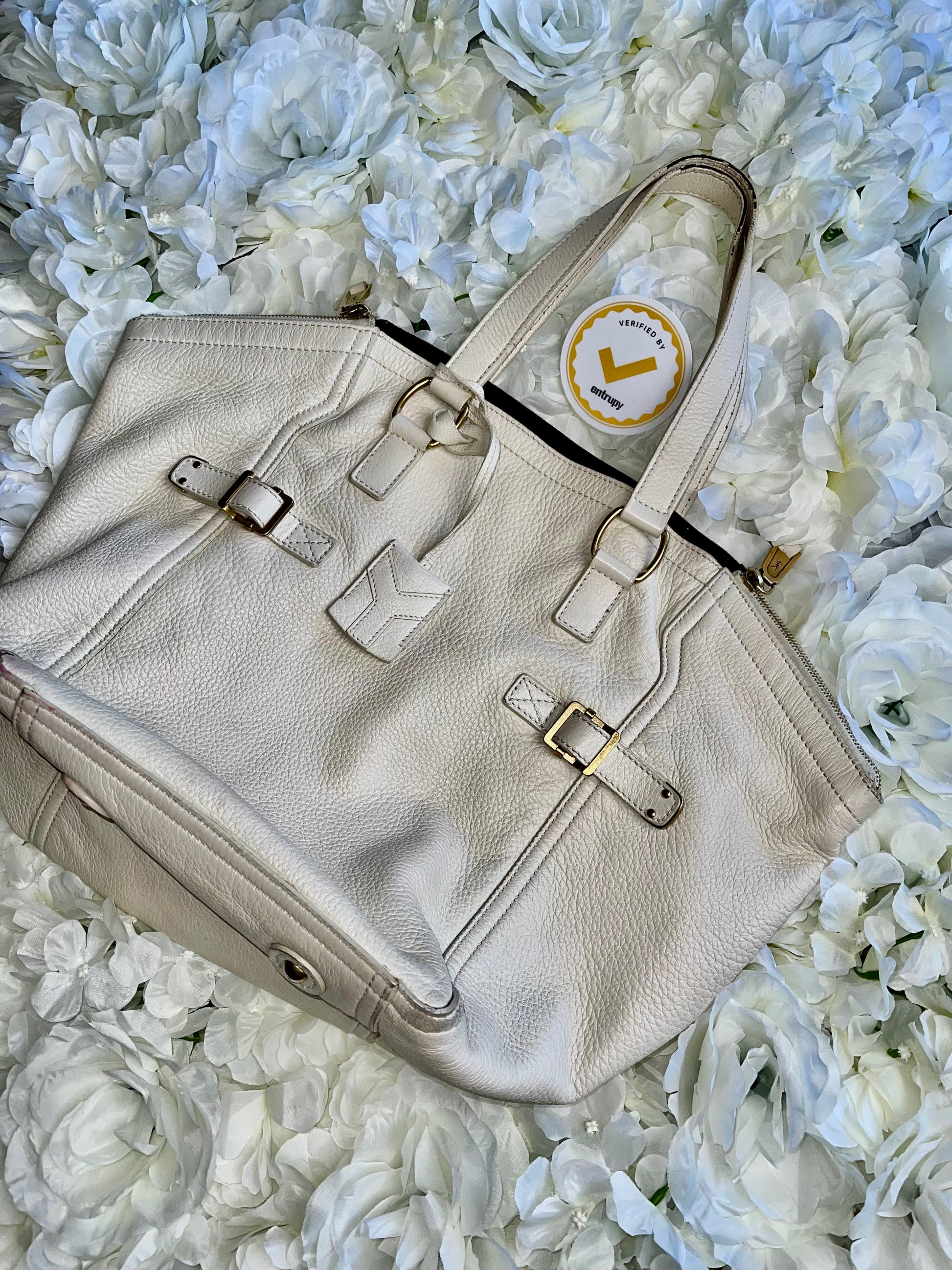 Yves Saint Laurent Rive Gauche Downtown Crème Leather Handbag- Vintage
